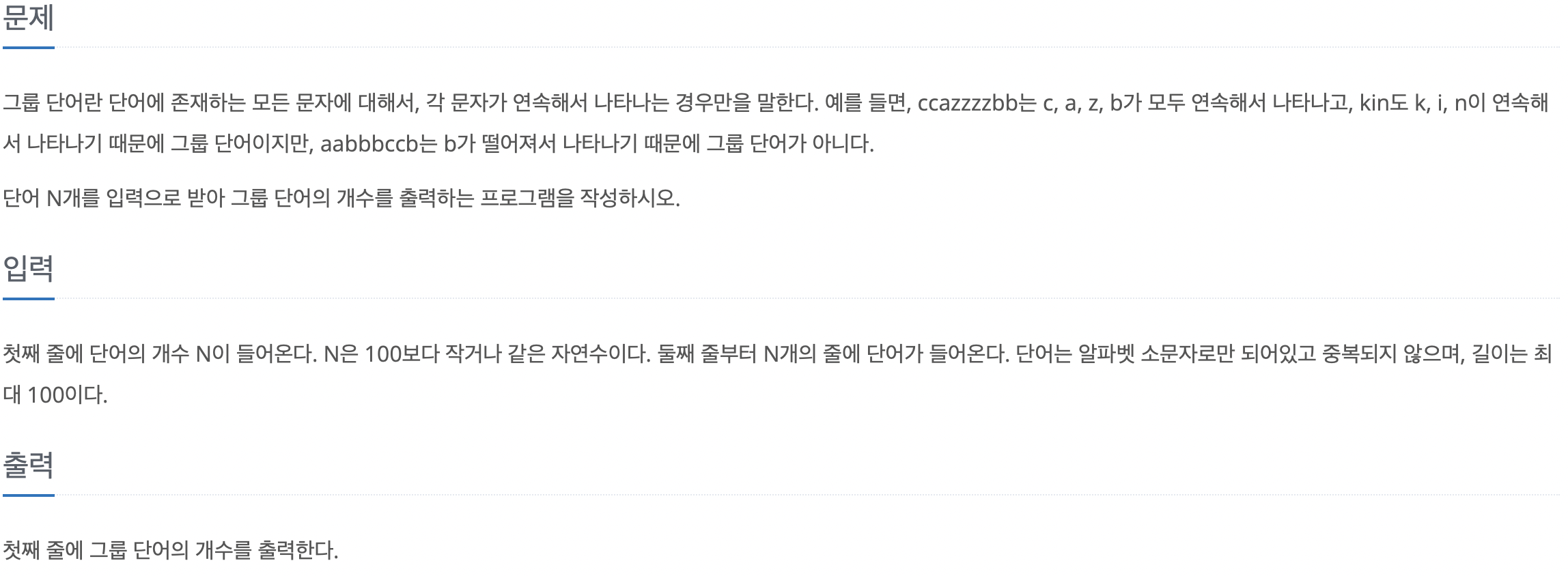 앞문자를 확인하여 같은 문자면 continue 다른 문자면 그룹단어가 아니라고 판단 후 break처리를 함으로써
