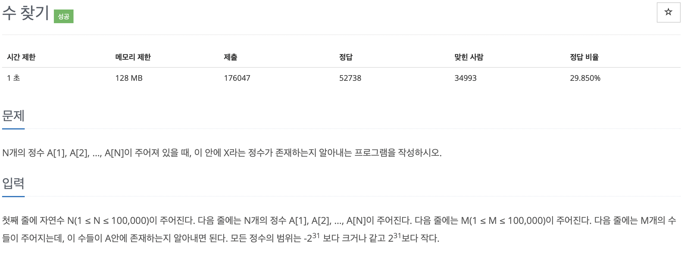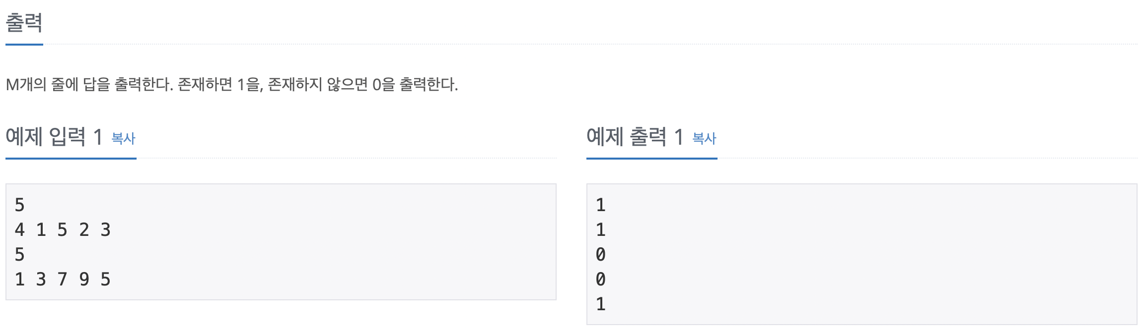 ////1920 수 찾기 얘는 시간초과뜸(contain함수는 O(n)이라 얘도 빠른편인데 왜 ....)